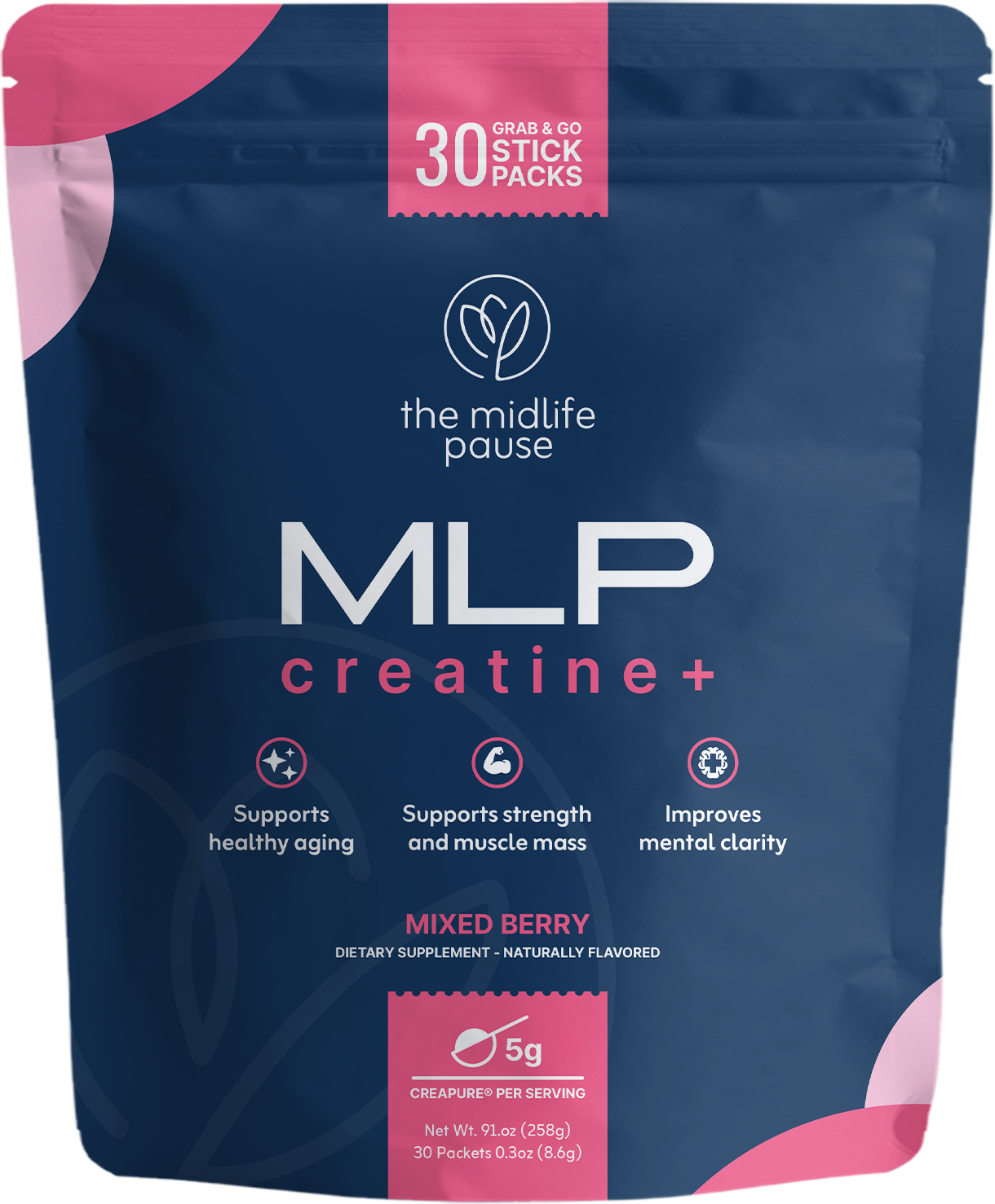 I've been taking MLP Creatine+ since it was released, and as a woman in midlife (with a fairly sensitive system), I can really appreciate the mild berry powder formulation, and the great extras, that also do not irritate my digestive system, cause any bloating, or any other uncomfortable symptoms. What I love most is the pure (research backed) ingredients and is its ease of use! The small portable packets are remeasured for the perfect quick dose, which helps me to begin my morning routine with greater ease.